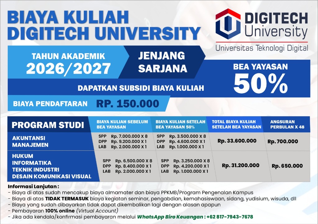 Informasi biaya kuliah tahun akademik 2026/2027 untuk berbagai jenjang pendidikan